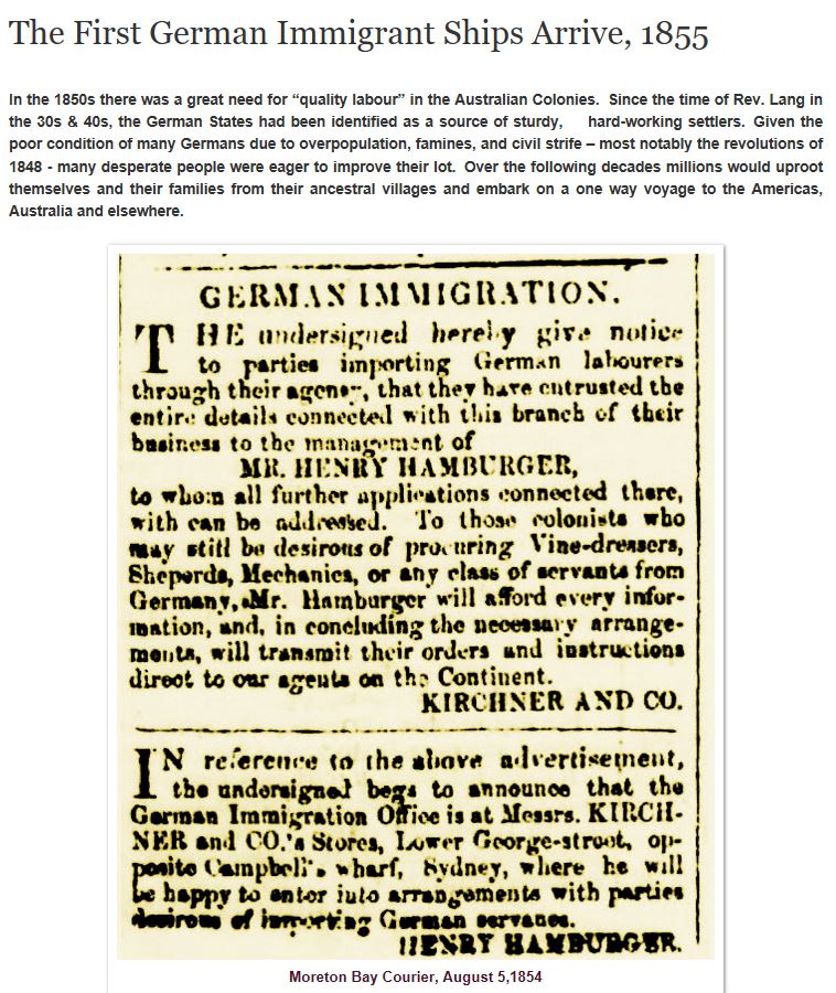 In the early 1830s, the fertile valleys of the Hunter River¹ became a quiet refuge for German emigrants seeking a new beginning. Among the first arrivals were families such as the Schmidts², Brauns³, Müllers⁴, and Hoffmanns⁵, who, leaving behind the uncertainties of Prussia⁶ and Saxony⁷, voyaged across oceans with little more than hope, faith, and the skills honed over generations.
